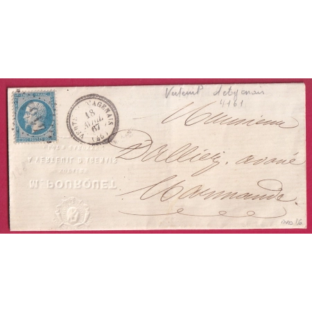 Nouveau N°22 24 GC 3930 THENON DORDOGNE LETTRE CHARGE POUR LUGAIGNAC PAR BRANNE GIRONDE LETTRE... 120,00 € add_shopping_cart Ajouter au panier